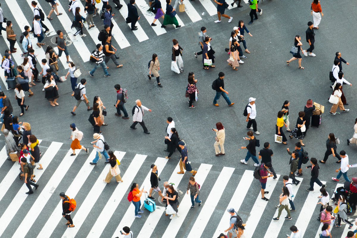 渋谷スクランブル交差点は、一度の青信号で最大3000人が行き交うと言われています。この圧倒的な人の波の中では、誰もが「匿名の一人」になります。